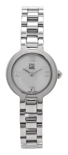 Venture out in this elegant precision dress watch from ESQ. Classic lines and sophisticated styling make it the perfect accent for any occasion. The slender polished steel case measures just 23 mm wide and has a graceful rectangular shape. It holds a silver textured dial with luminous silvertone hands, Arabic numerals, and baton markers. A small subdial at the six o'clock hour registers the seconds, and the ESQ logo appears both on the dial and on the distinctive gear-style crown. The watch presents on a beautiful polished steel link bracelet that's finished with a hidden double-locking clasp for a seamless look. This ESQ watch offers precise Swiss quartz movement and is rated water resistant to 30 meters.