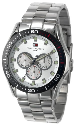 The Tommy Hilfiger brand consistently combines fresh American style features with unique details. With this Tommy Hilfiger Men's Multi-Function Watch, a time-honored classic is given a modern look. This watch, which is powered by Japanese-quartz movement, is waterproof up to 165 feet. The stainless-steel band accompanies the push-button-fold-over clasp, and the 47-millimeter case is also made of stainless steel. The dramatic silver dial face offsets the easy-to-read indexes, and for additional time-telling convenience three sub-dials indicate the day, date, and month. This watch is backed by a 10-year limited manufacturer's warranty.